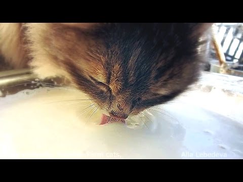 Koshlandia Siberian Farm cats drink MILK Кошки пьют МОЛОКО